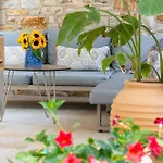 A szálláshely olyan önellátó felszerelésekkel rendelkezik, mint a kávé/tea készítő, hűtő és konyhai edények, így a vendégek saját maguk készíthetik el ételeiket. A Mesogeios Restaurant görög ételekkel kényezteti vendégeit, és hozzávetőlegesen egy 15 perces sétára található.